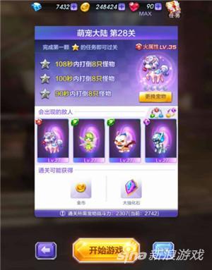 萌宠大陆的第28关副本要求特工限时打怪,即在规定的时间内要消灭掉规定数目的野宠,能不能通关而且通关的星数都和灭宠时间息息相关。建议大家在角色的选配上选用收集能力见长的角为最佳,角色快速的收集能力能让携宠的宠物技能有效的激发和释放。综合属性相克的原理及灭宠的时间性要求,建议大家选择者火属性宠物为适宜,而星星小马宠物为最佳。小编在本关中选用的是疾风少年+星星小马的搭配组合。