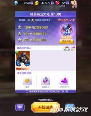 精英萌宠大陆的第10关副本是限时BOSS类副本。要求玩家在规定的时间内打倒BOSS。建议大家在角色的选择上要精心,首先选择血高的角色比如梦境王子、疾风少年;其次选择具有超强破障和得分能力的角色比如疾风王少年、魔女娜娜、梦境王子等。在本关中携宠的战力是打倒BOSS的主战力,所以携宠战力的强弱是本关通关的关键之所在,最好选用属性为火属性的高攻宠物,建议大家选择火属性的巴哈姆特为最佳。