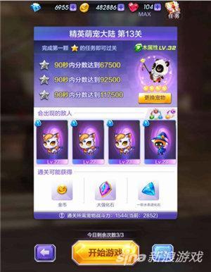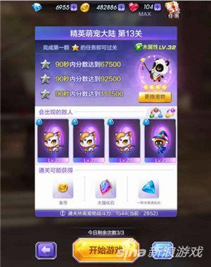 精英萌宠大陆的第13关副本中,要求各位特工在限定的时间内达到规定的分数,90秒内分数达到17500分为三星通关。建议大家在角色的选择上要选用破坏和得分能力都强的角色。另外携带宠最好选配具有高攻效果和属性相克优势的宠类。建议大家选择木属性宠物为宜。