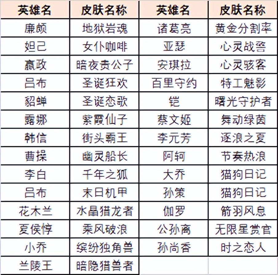 史诗皮肤名单:下图一共27款史诗皮肤,其中街头霸王、时之恋人、特工魅影、黄金分割率、暗夜贵公子等质量偏高,同时在最近也没有上架过皮肤碎皮商店,值得去抽一下(不会抽到已有皮肤)。