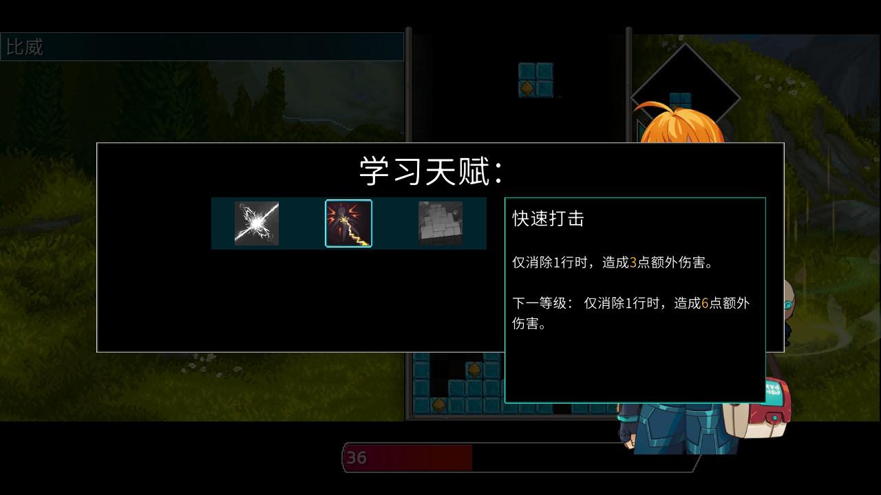 而如果说你没那么擅长“俄罗斯方块”,很难将机制转化成优势……那也没什么大不了的,毕竟《星石传说》本质上还是角色扮演游戏,几场战斗,经验加满,你依然能获得生命、力量和防御等多个纬度上的自然成长,并在给定的三项天赋里任选其一,或增加消除伤害,或方便迅速消除,或得到暴击、群伤、恢复、吸血等增益效果,从而愈挫愈勇,愈战愈强。