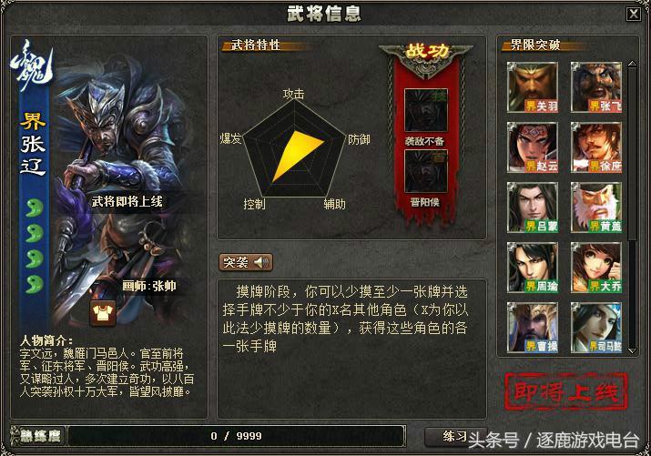 这里主要来说一下,三国杀中的张辽,一共有两个版本,一个是标准版,另一个是界限突破版本。