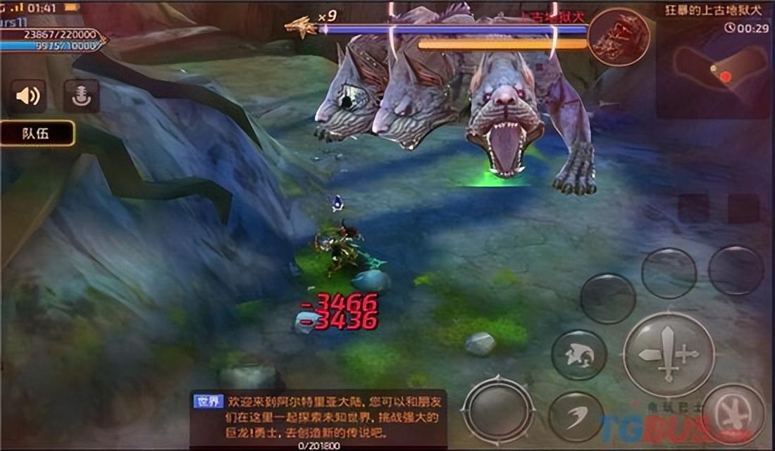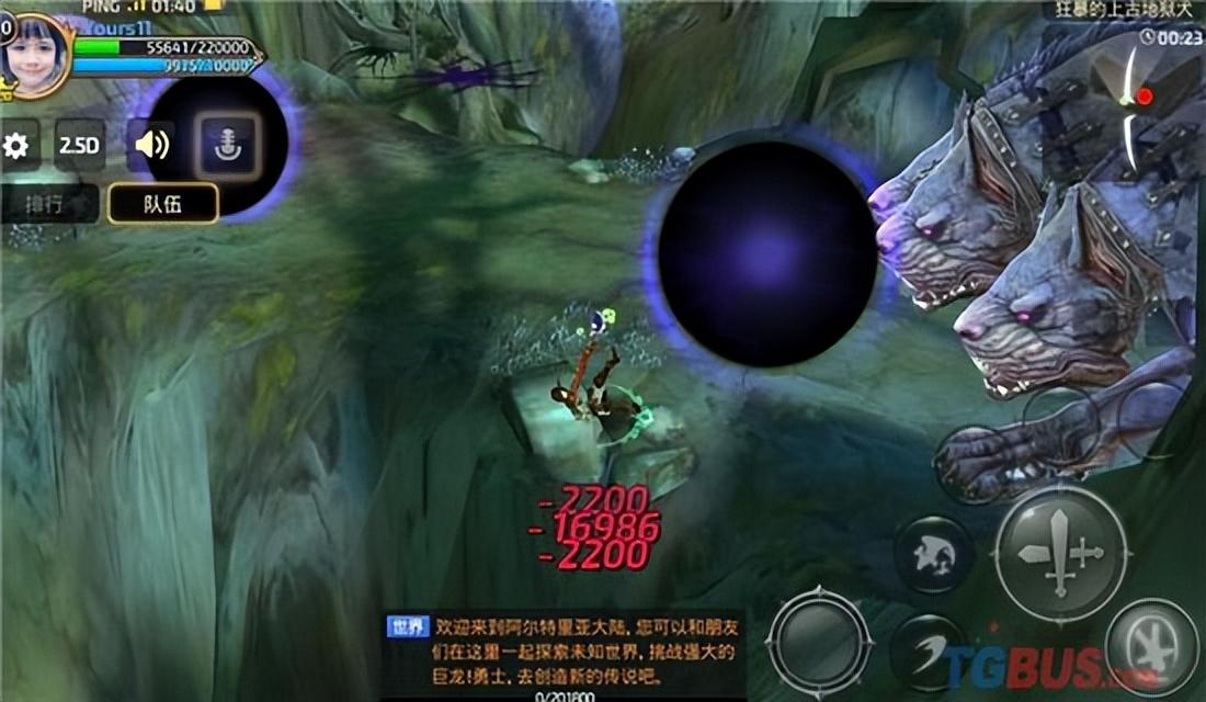 进入上古地狱犬,在游戏的主题里活动里。需要组队或者个人前往挑战。小编第一次独身前往,正在悠闲的山谷中做好战斗准备,突然后背一个袭击。这三头身的地狱犬简直丧心病狂地冲了过来,血槽就快没了。