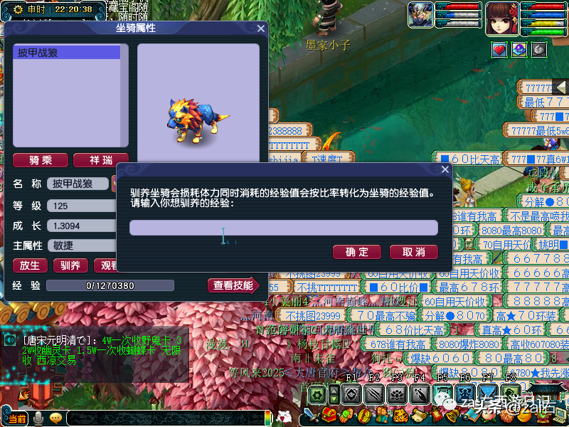 仙缘洞天的相宠师(123.110)可以快速补充