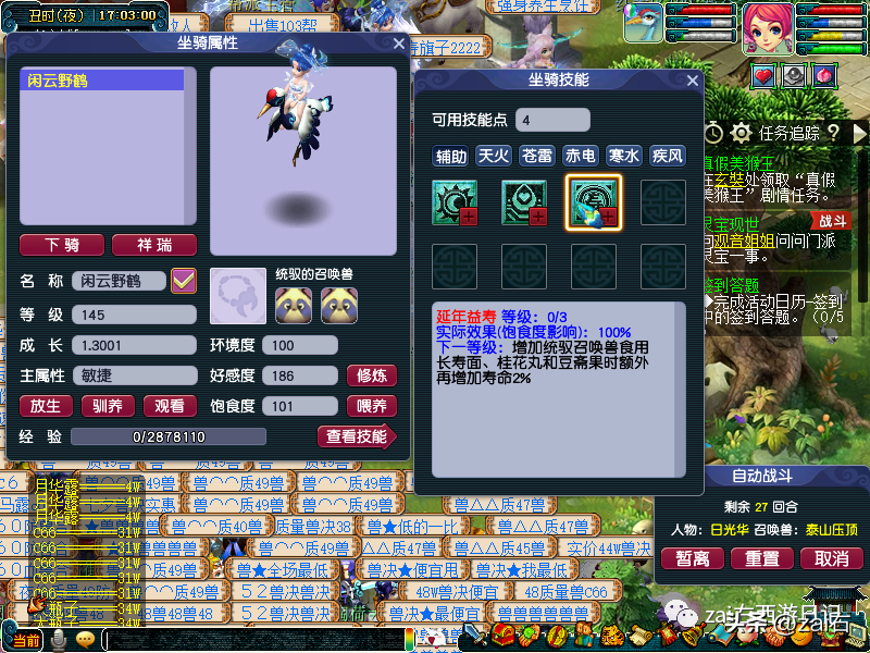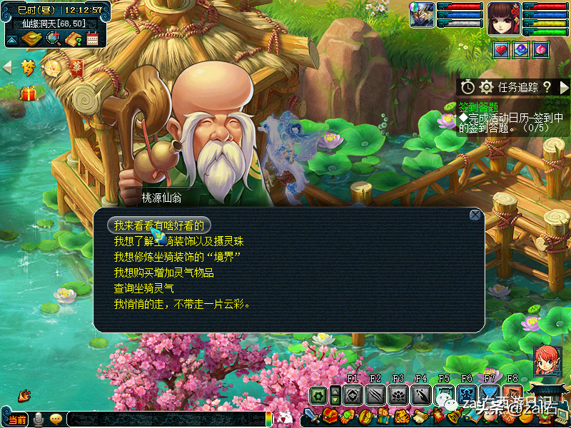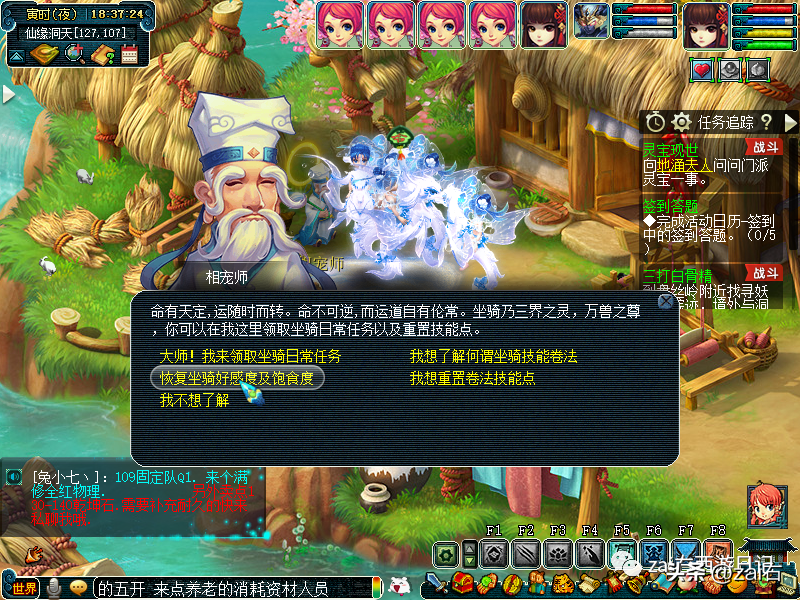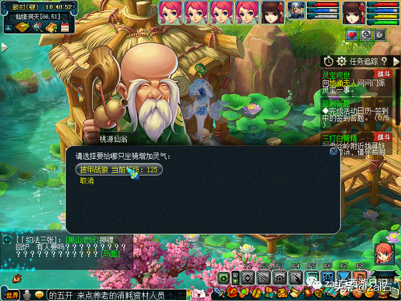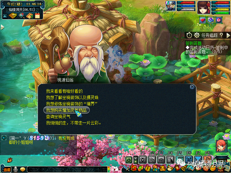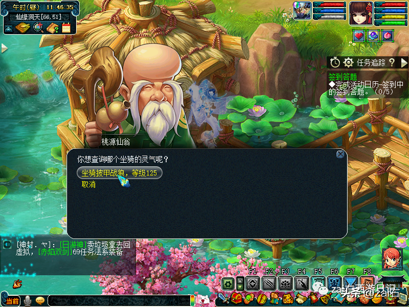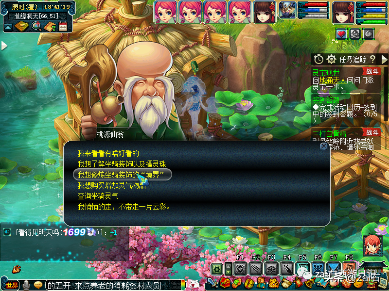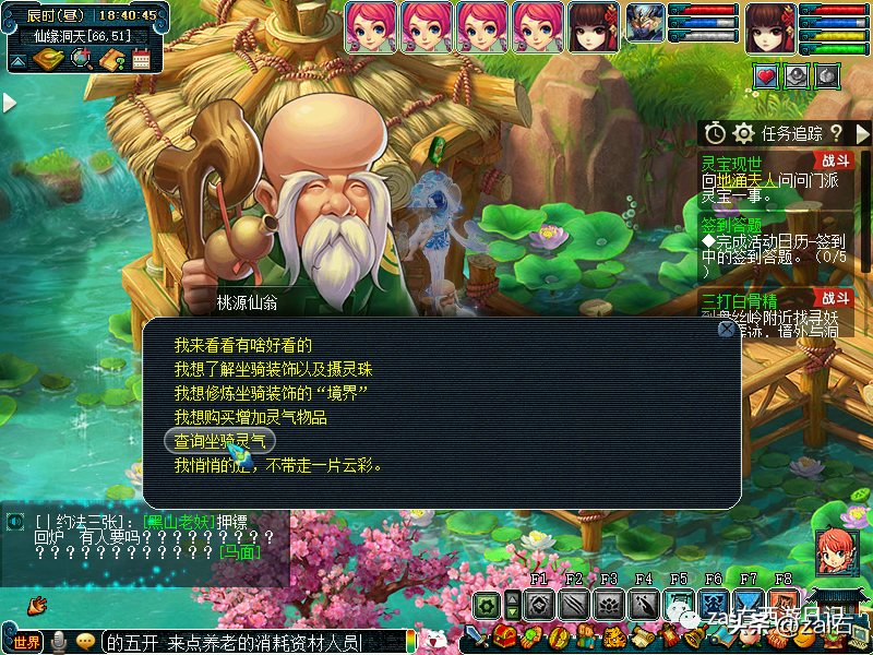 点击桃源仙翁,可以查询坐骑灵气~