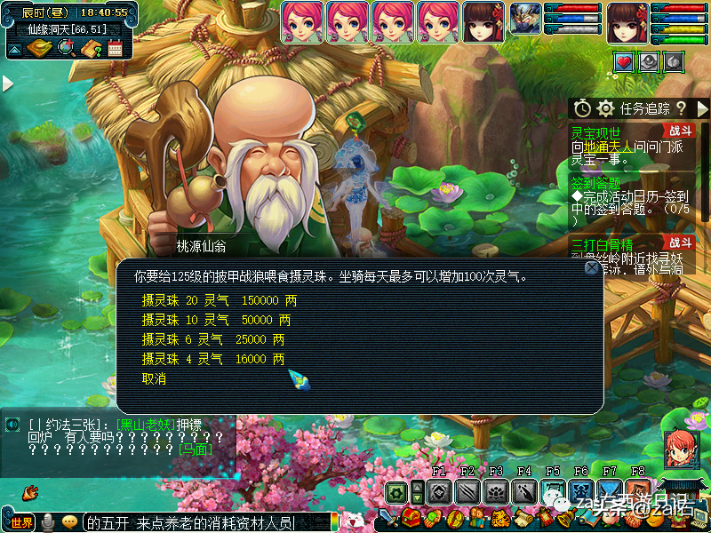 桃源仙翁处点击购买增加灵气的物品~