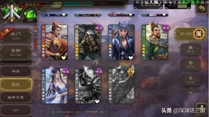 计划总是赶不上变化,从蜀国新添的沙摩柯到吴国新增吕范再到魏国的卞夫人,以及即将加入的界左慈,国战灯离我越来越远。
