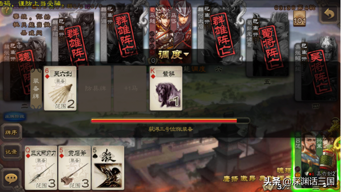 并且由于一技能可以拿自己的装备牌,然后选择不分配给其他人,留给自己,又因为装装备时吕范自己也可以摸一张牌,这就意味着只要有装备牌,吕范每回合都可以稳定“英姿”。