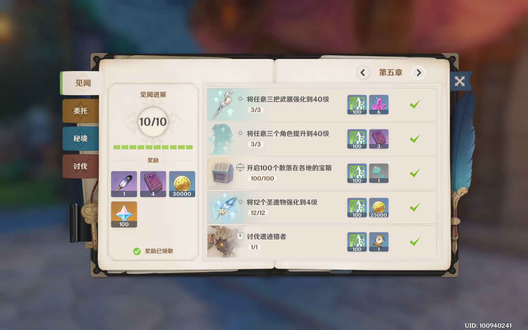 简介:在右上角书籍一样的图标里,有着见闻任务,相当于新手引导,这里可以获得两把钥匙。完成第四章“将蒙德的七天神像供奉至6级”任务可获得一把钥匙。