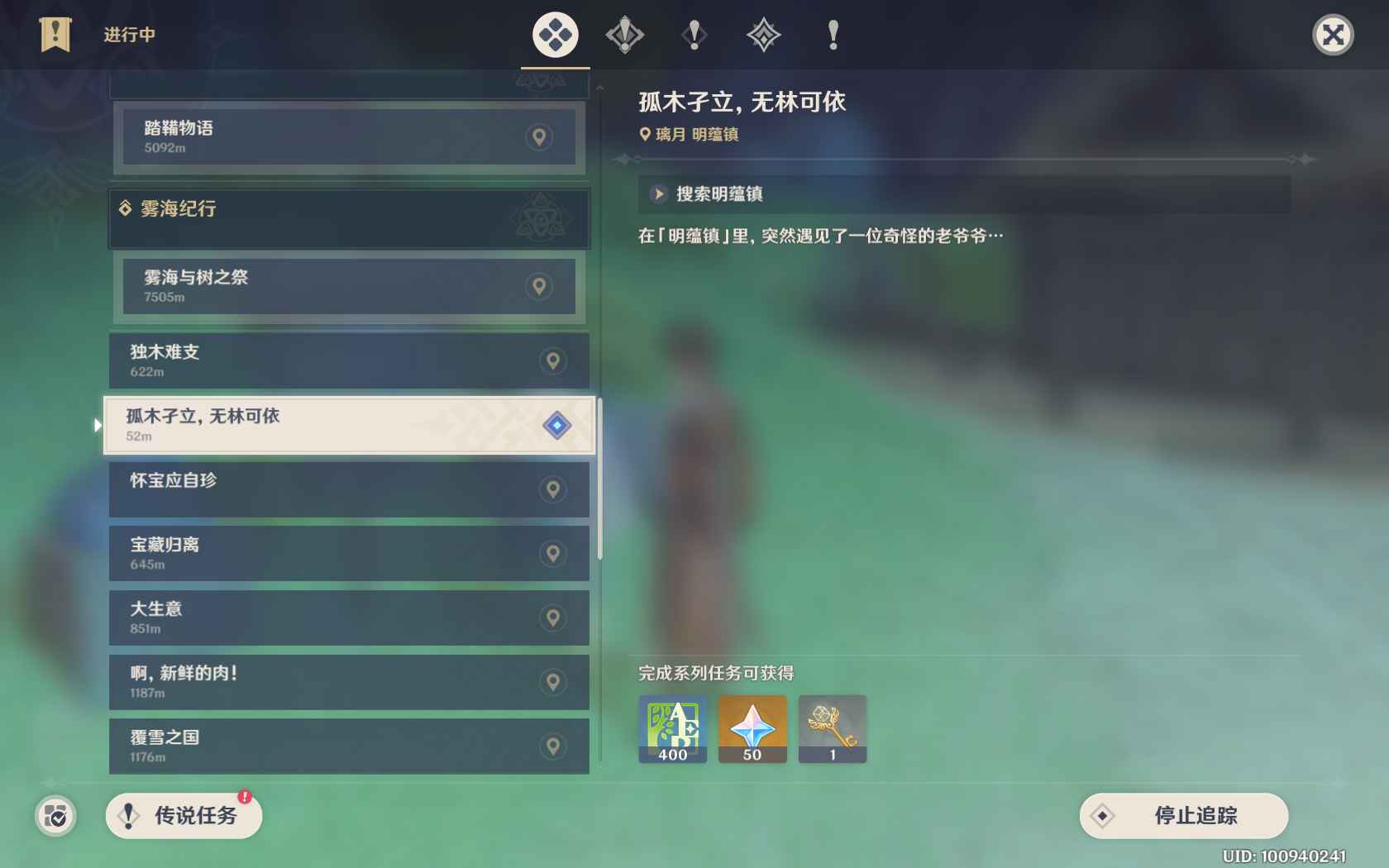 第二个获得钥匙的任务是大型世界任务《古云有螭》,在轻策庄南方竹林附近找到石板触发任务。