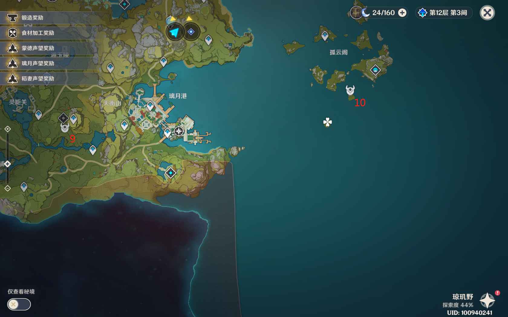 最后2个地灵龛位置,一个在秘境曲径通幽之处附近,一个在孤云阁下方小岛。
