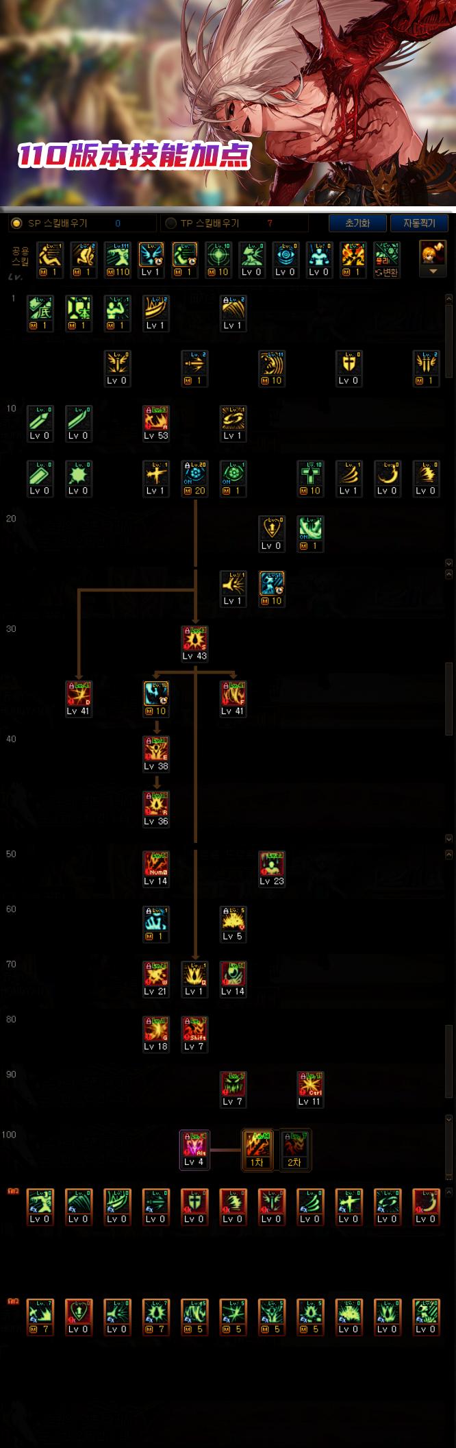 红眼的技能加点变化不大,不过因为新版本SP紧张,领主太喜欢跑了,血气爆发表现很差,点1级就好;鲜血暴掠则需要带护石才能用,但考虑CP武器的原因,没有护石位置,选择1级加点;30级之后的全部技能选择点满,剩下的SP个人选择点满了小崩,红阵和暴击,其他的小技能可以看情况分配1级。