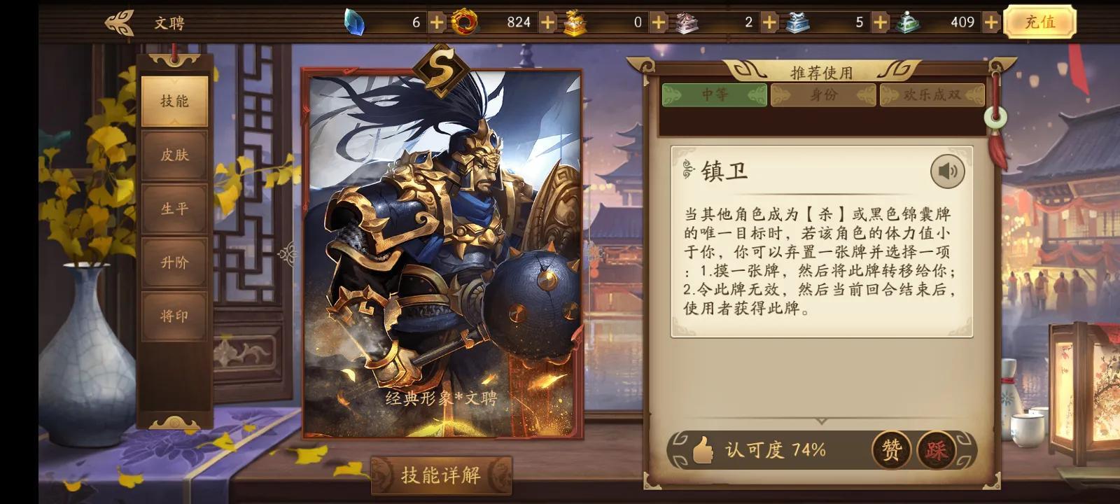 文聘技能镇卫可保队友孙坚不死,将伤害牌转给自己