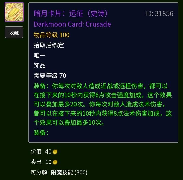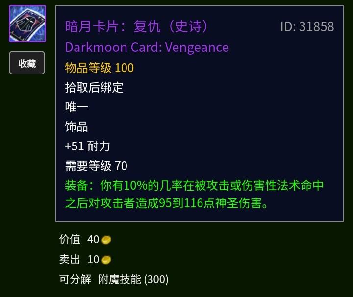 这个基本全是70暗月饰品最亮眼的,可以弥补战士T群啦的短板,但是战士T的效果不如熊和防骑,防骑带人必备,便宜尽快入手