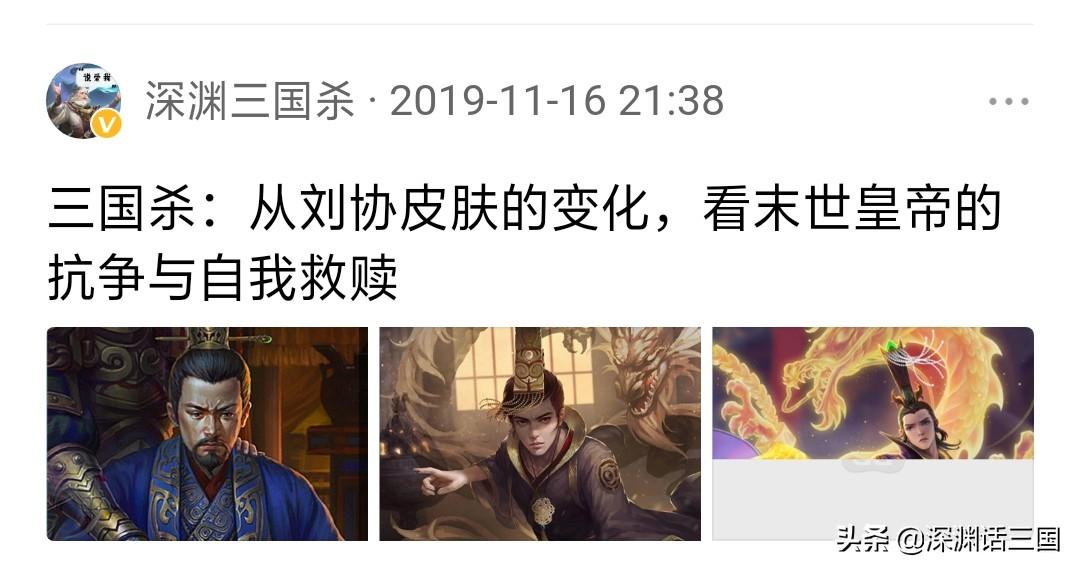 ps:由于篇幅原因,皮肤解析我们这次只解析原皮,如果对刘协其他皮肤解析有兴趣的可以去看看我2019年11月16日的文章,有完整的刘协皮肤解析。三国杀:从刘协皮肤的变化,看末世皇帝的抗争与自我救赎