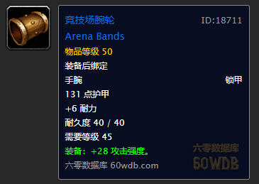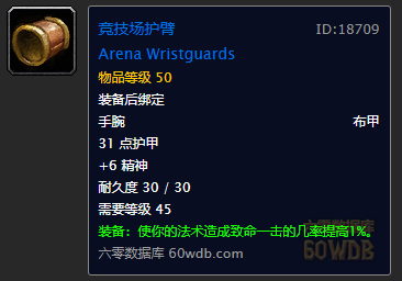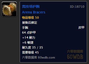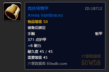 此外,通过任务【竞技场大师】,可以获得蓝色饰品[竞技场大师饰物]。玩家必须在竞技场内将12个竞技场高手饰物交给小个子约翰·米斯瑞尔,以获得蓝色品质的饰品。这个饰品在19-20级的时候非常好用,但是要得到它并不容易。