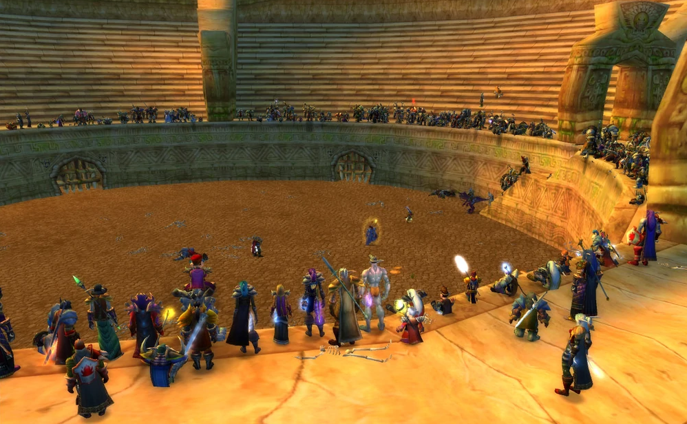 尽管如此,这仍然是一个从该地区几个地精商人那里囤积武器和补给的好地方。竞技场拥有该地区最多样化的人口。大多数部落种族都在这里安家;兽人喜欢竞技场的争斗,而暗矛巨魔将留在兽人原先的地盘上。