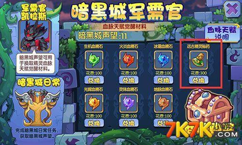 小洛克就会进入暗黑城外围场景,远古精灵秘药可以在暗黑城军需官用声望换取获得。