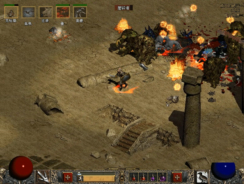 那么毁天灭地+呼啦圈风暴怎么样呢。呼啦圈还可以确保每秒钟都打到怪,不过要注意保持距离,冲到怪面前之后要立刻后退,让肉盾们挡住怪。那,毁天灭地还是没用。