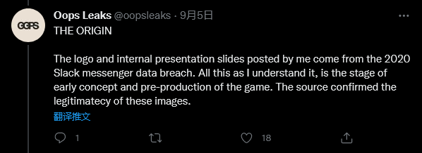 在接下来的数十条推文中,Oops Leaks 对新作的多方面信息都进行了介绍。可以百分之百确定真实的是,他发布图中的新作 Logo 和内部幻灯片是官方于 2020 年内部聊天软件数据泄露导致的,这些都是游戏的早期概念。