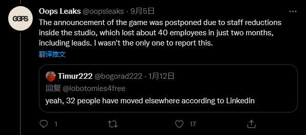 据他称,游戏原计划于 2021 年的 TGA 年度游戏大奖颁奖典礼上公布。但是由于工作室内部裁员,在短短两个月内失去 40 名员工以及潜在客户,游戏的公布被推迟。