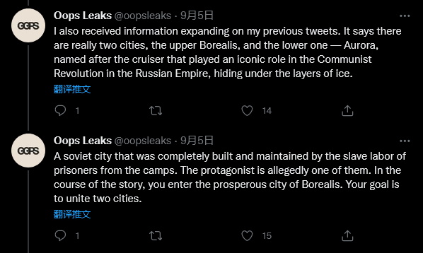 “极光城”将是一个苏联城市,由劳改者建造和维护,主角据称就是其中之一。随着剧情推进,主角将进入繁华的北欧城市,旨在让两个城市联合。