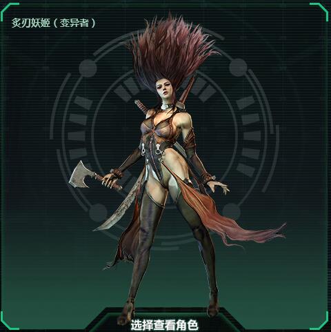 其次是炙刃妖姬,同样是位女性变异者,不过她可比甜心要彪悍得多,妖姬的武器是把斧头,看似像近战武器实际却是个远程攻击,可以通过投掷斧头来远距离攻击敌人,随着等级的提升技能伤害也会提高,并且攻击击退效果也会有所增强。