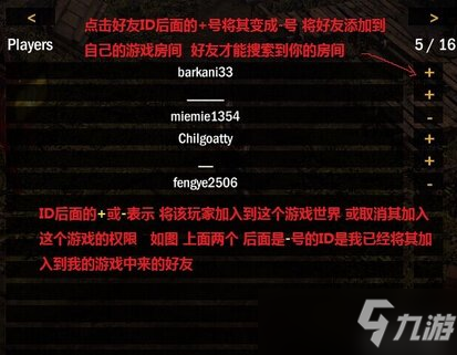 点击ID后面的 + 号 变成- 号就成功了 同样的 你如果不想再让某人进到你的游戏世界里了 就 点击-号 取消他进入的权限!