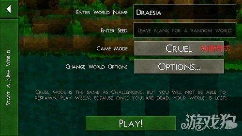 这一个模式是 CRUEL 残酷模式。完成以后,就可以点击PLAY!按键了,然后选中自己刚刚设置的游戏类型,就可以直接进入了。