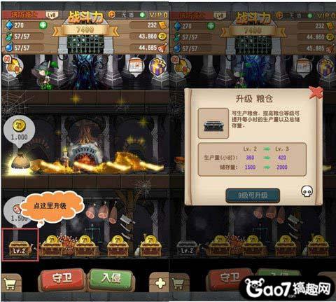 塔防骑士团自动生产,生产篇之粮仓建造,在塔防骑士团中“粮仓”顾名思义就是游戏中储备粮食的地方。粮食可以用于升级英雄、建筑、升级金币生产箱等,当玩家的粮食不足的时候就需要用到粮仓功能了。游戏中粮仓是可以进行升级的哦,升级后粮仓产量就会增加。点击已有粮仓就看到升级提示了,粮仓的等级跟骑士等级相关!