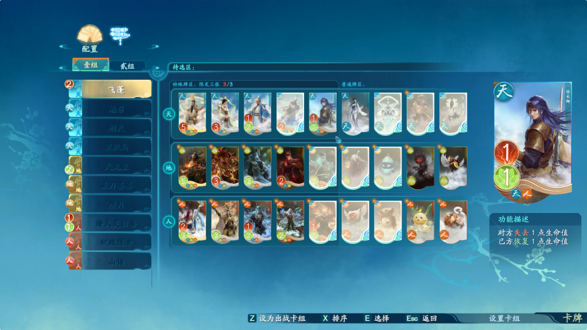 特殊卡牌的技能需要消耗能量来释放卡牌技能,比如AI手上这张飞蓬,效果是对对方章程2点伤害,而计算血量是先扣血再加血,在只有两片叶子的情况下就会被斩杀而不会回血(绝不是因为菜啊,是为了演示斩杀效果)所以我们只要看到AI手中凑齐了天地能量,打出飞蓬牌,即使我们赢了扣除对方1叶子,我们也会因为飞蓬的技能效果扣除2叶子。所以我们一定要注意强力技能牌的选择,由于扣血的优先级比回血高,所以在编辑卡组的时候,我建议是优先带扣血技能牌。