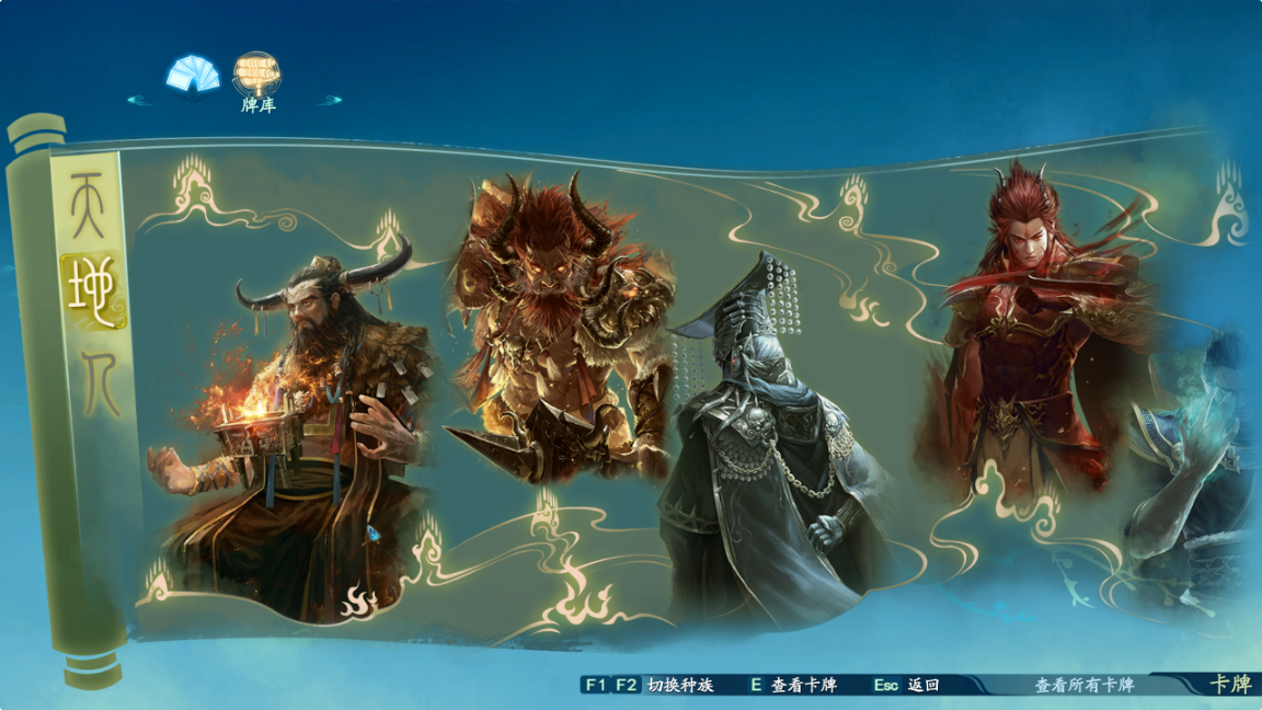 简单用我们二年级的知识来理解,在天地游中分为天地人三种属性克制,其实我们直接理解成锤子、剪刀、布的克制关系,天克制地,地克制人,而人定胜天,只有中国文化中才能孕育出这种逆天改命的爽快中式浪漫设定的意味。而在锤子剪刀布的基础上天地游增加了技能设定,技能需要消耗能量来释放,消耗的能量即为打出的牌所累计的,要注意的是重复的牌无法累计双份能量,即连打两张天使用了消耗天能量的技能,天能量就清空了并不会剩余,所以每种属性各打一张,凑够能量就放技能牌是游戏基础。