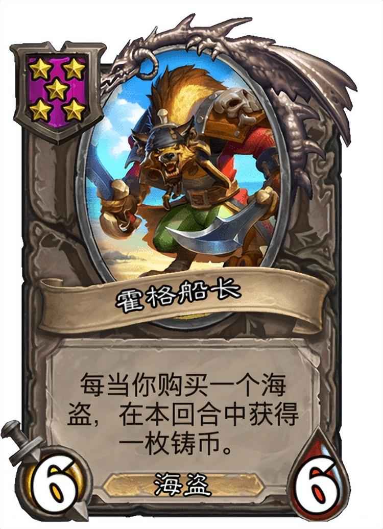 霍格是海盗体系的核心,如果有金霍格和一个普通霍格买海盗就是零费,卖了还能赚一费,这也是为什么电表倒转的由来。所以正常的海盗体系都会选择在4本的时候碰五。