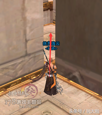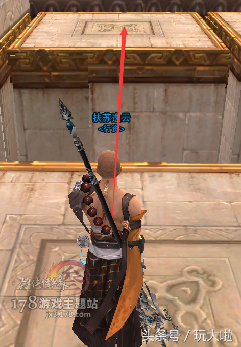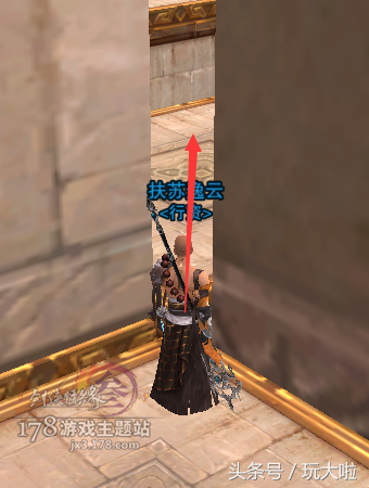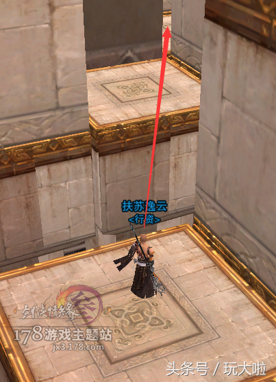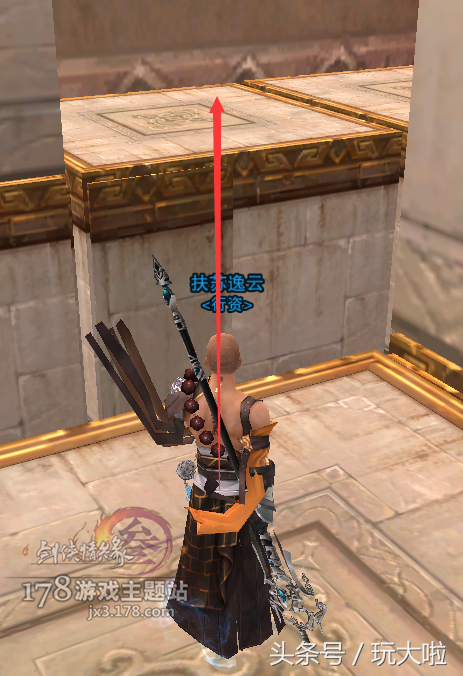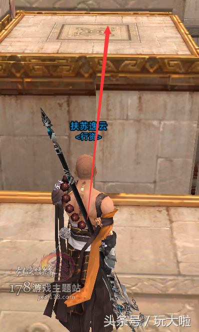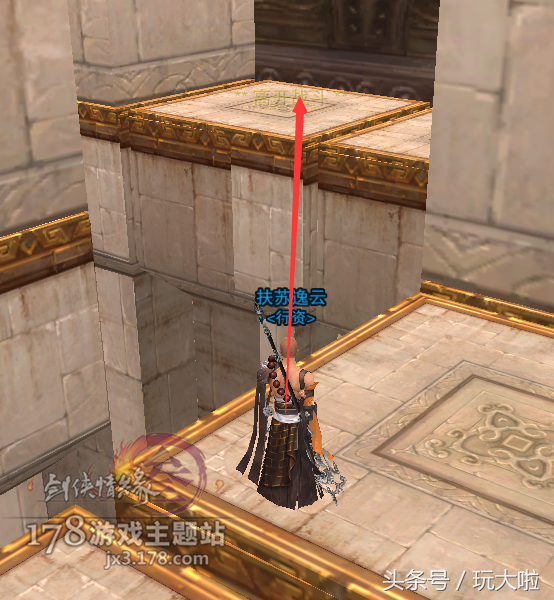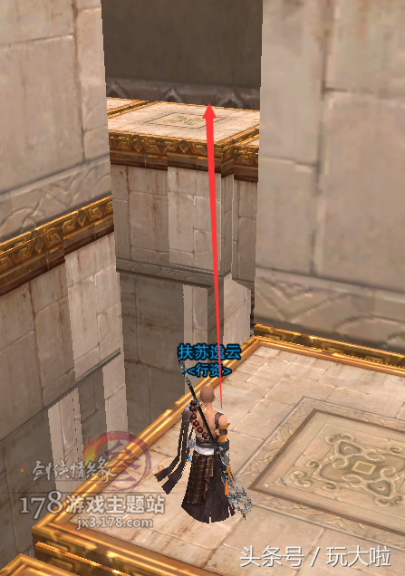 然后镜头微右转,我们要跳到斜对面的台子上,这里可以用扶摇,犀利的小伙伴可以二段过去: