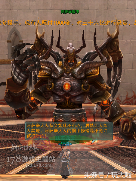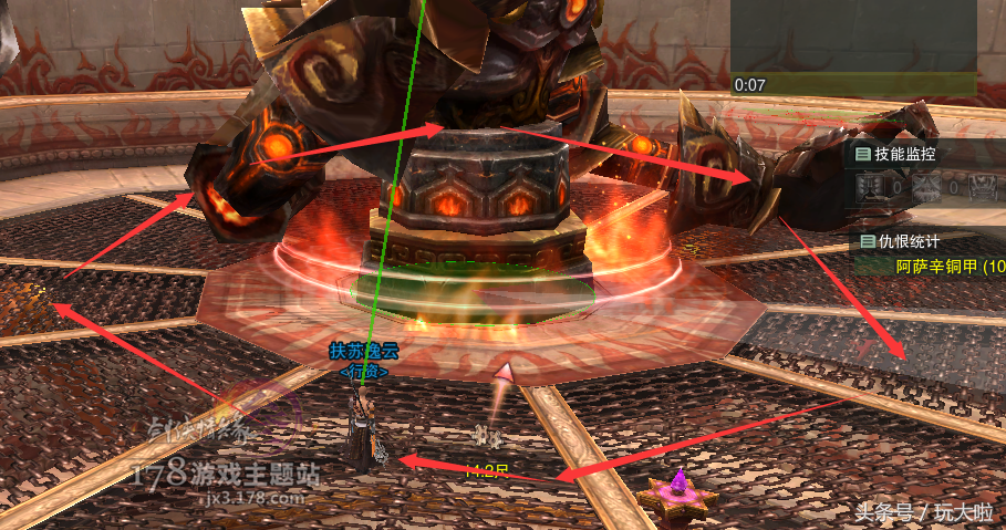 我们要打的是正中间的阿萨辛铜甲,只要选中它之后顺时针转着圈打他即可,瞬发职业比较好打,读条职业也够的,只要记着边打边移动躲开技能就行: