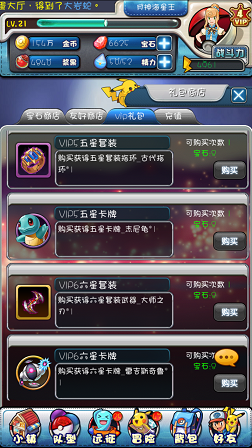 除了使用精灵球去抓一只没到手之前你都不知道是啥的精灵,玩家们还可以去礼包商店瞅瞅哦。在这可以获得高星级的卡牌哦,我再也不用担心卡牌没人家强大啦,哈哈。