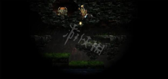 5、在山洞里有个靶心,可以站在右边高台阶使用弓箭二段跳可以射中。宝箱也在上面高台,需要到有石门的那个小山第二个台阶用二段跳跳上去。