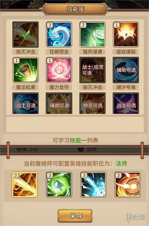 魔械师可在【技能库】界面随意搭配与链接职业相对应的技能;(如链接法师只能装配法师的相关技能)