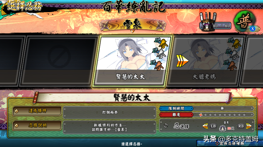 每名女角色的变身画面都独立制作,看着各位女忍者从又大又白的四次元沟谷中掏出一卷厚厚的卷轴。我不禁赞叹,好功夫!
