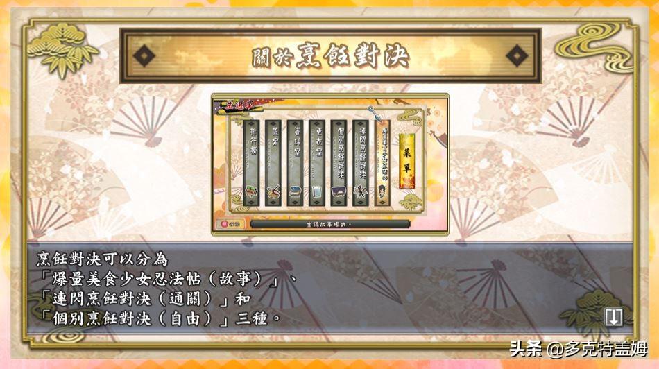 本作是《闪乱神乐》系列的一款番外性质的作品,剧情与本篇没有什么联系,玩法、系统也与本篇的割草无双差异极大。不过即使是以烹饪为主题的游戏,以依旧继承了系列的各种“优良传统”。