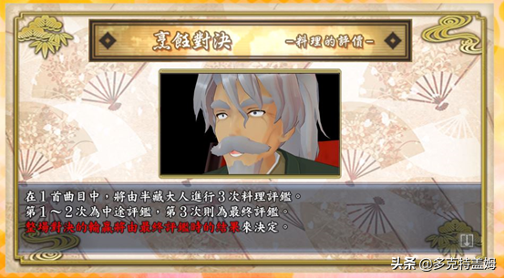 游戏的每次比赛,或者说每一首歌,都分为三个不同菜式的烹饪阶段。但比赛的最终获胜只与第三轮有关,即使在第一、二轮你打得再出色,第三轮分数落后还是算你输。