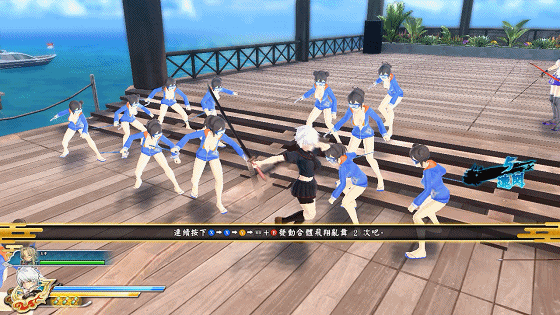 这是本作的新增招式,在双角色的情况下,玩家可以和另一位队友一起发动合体飞翔乱舞,对敌人进行追击。