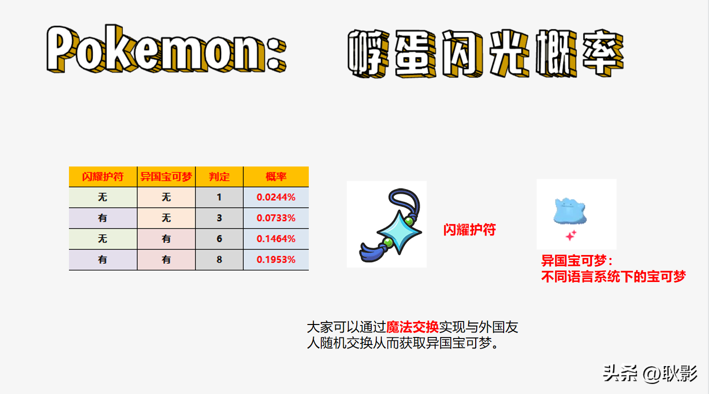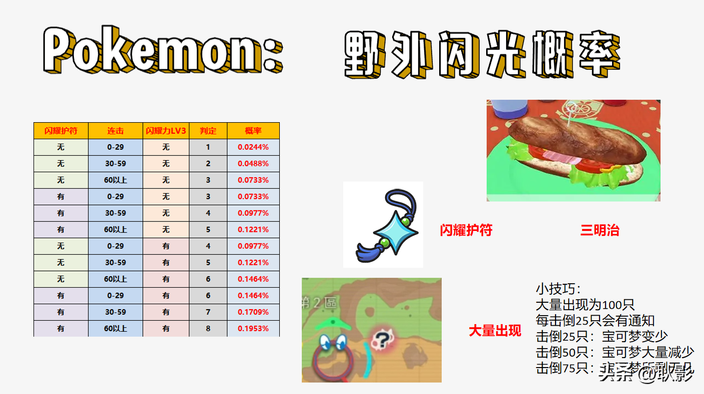 经过上面阐述的一大堆东西,相信大家对于获取闪光宝可梦都了解了。无论是野外捕捉还是孵蛋,闪耀护符可以大幅帮助大家获取闪光宝可梦,因此先全图鉴再考虑刷闪能够事半功倍。