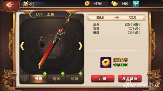 宝剑升级每次都是需要消耗一定数量金币的,升级成功后会提升宝剑属性,宝剑最高能够和角色同等级。