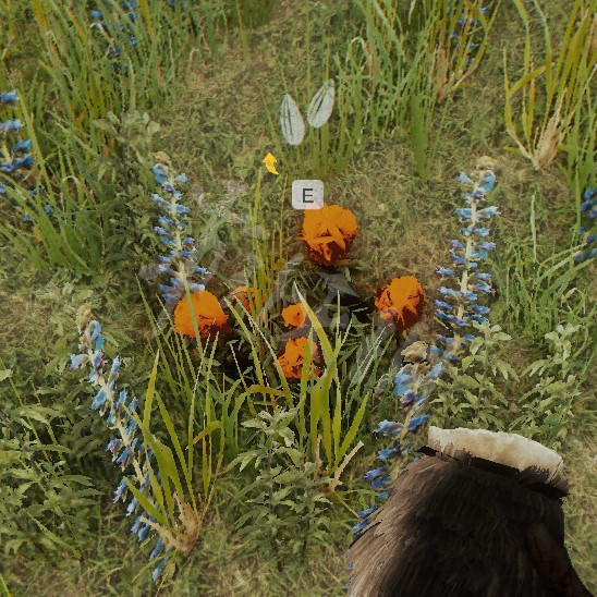 一处花丛每次可以采集到1朵花,花在背包中可以叠加10朵,按E即可捡起花朵。