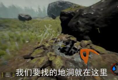 随后的我们可沿着红色箭头所指方向行进至一半山坡处,就这里会发现一个比较隐蔽的井口,是的,这里也就是武士刀洞穴的入口。