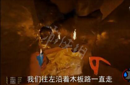 在选择了左边的路以后,我们只需要的顺着地上有木板的路行进即可。