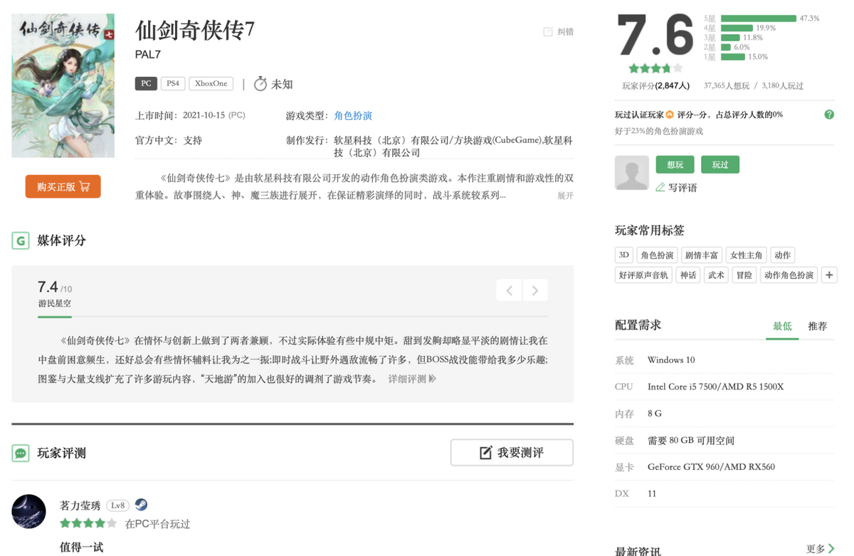 作为今年国产单机系列当中受到期待最多,IP最大的《仙剑奇侠传7》目前已经发售了,而在媒体们纷纷打出均分7.5之后,仙剑7也是成为了今年国单游戏中最亮眼的存在。