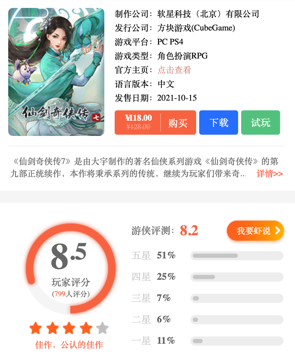 而就目前仙剑7全流程20个小时的速通之后,作为一名玩家也是认为128元的售价对于这样品质的游戏来说是一次值回票价的选择。