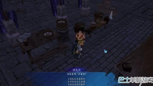 前往城中集市找汤包壮谈话,购买一笼汤包后,要从三种蘸料中选择一种,它影响到任务得到的奖励。